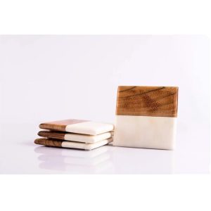 Luxury Custom Tea Coasters – Marble and Wood Design – TC01 – SETOF4