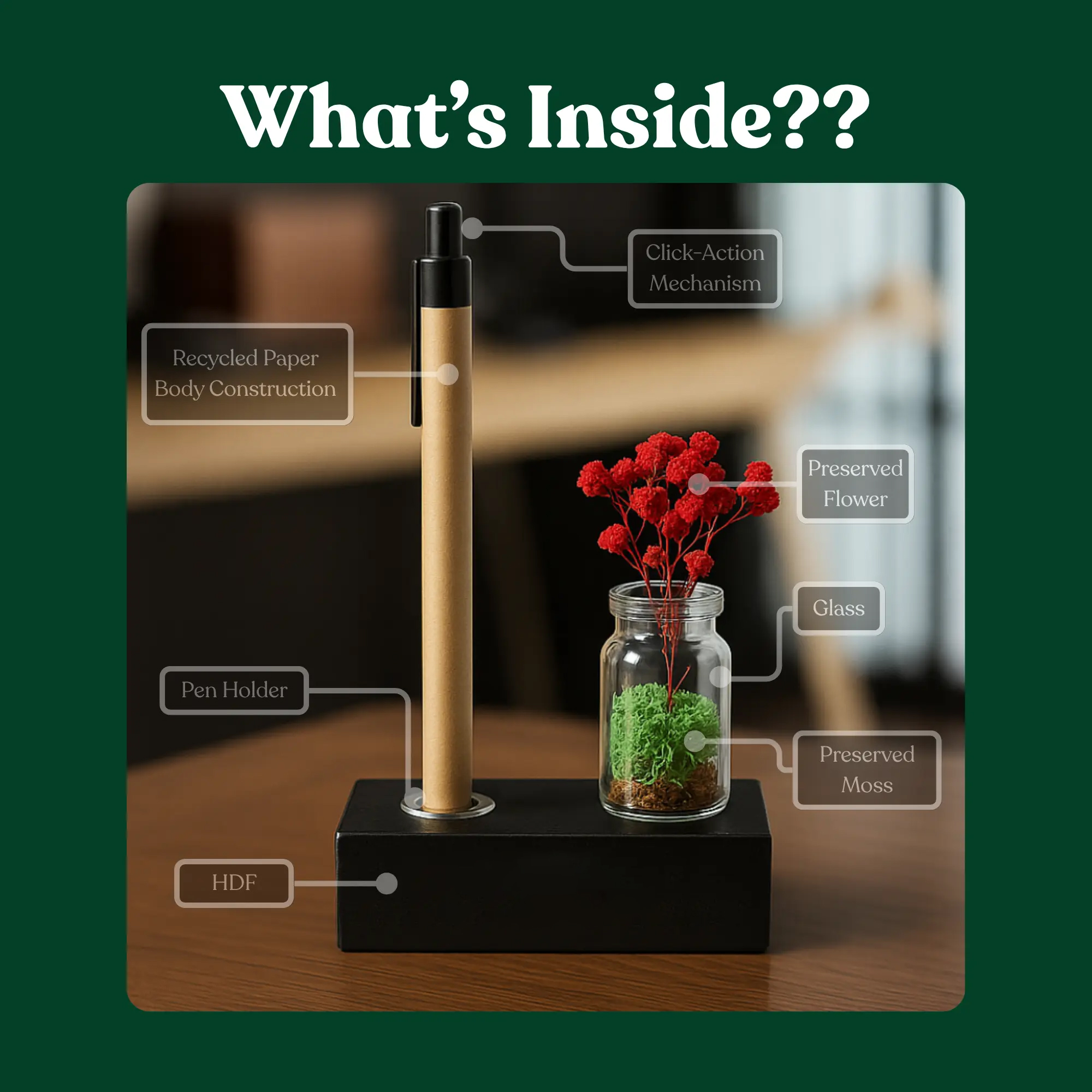 Custom Eco-Friendly Paper Pen with Mini Glass Jar and Moss Display – PNS02