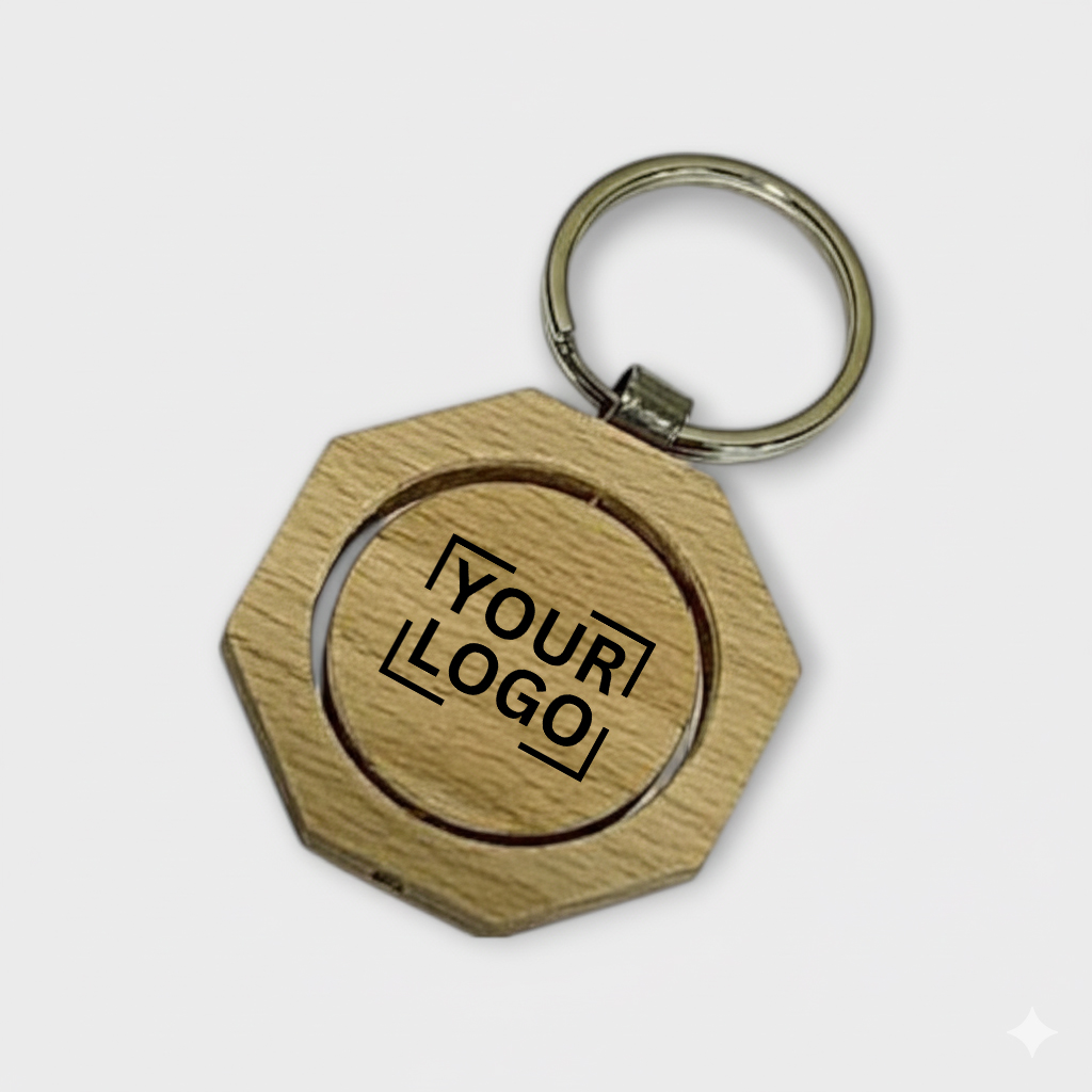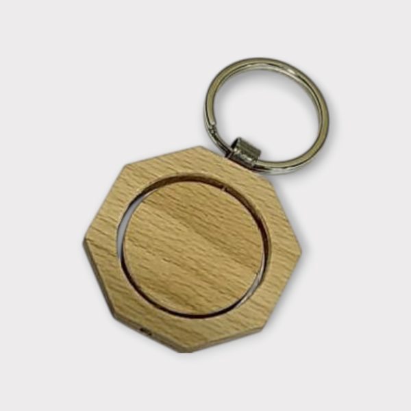 Custom Hexagonal Wooden Keychain with Metal Ring – KC11