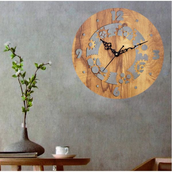 Decorative Gear-Themed Wooden Wall Clock – CK01