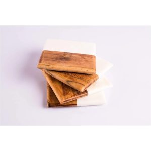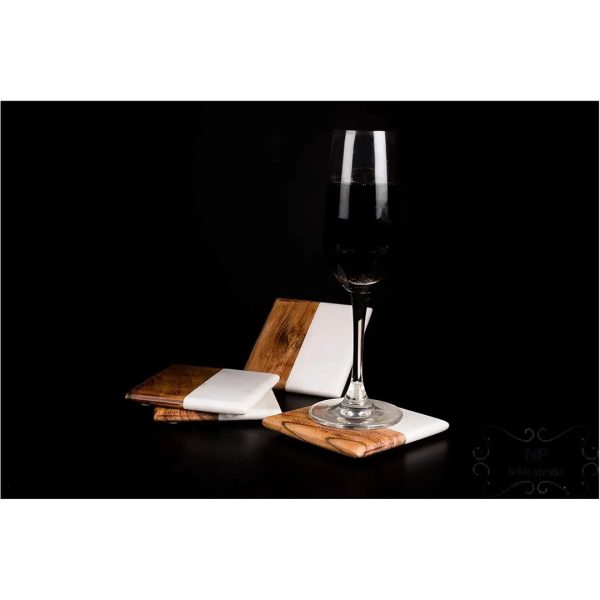 • Elegant Design: A set of stylish coasters made from a combination of high-quality wood and marble for a refined look.