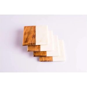 Luxury Custom Tea Coasters – Marble and Wood Design – TC01 – SETOF4