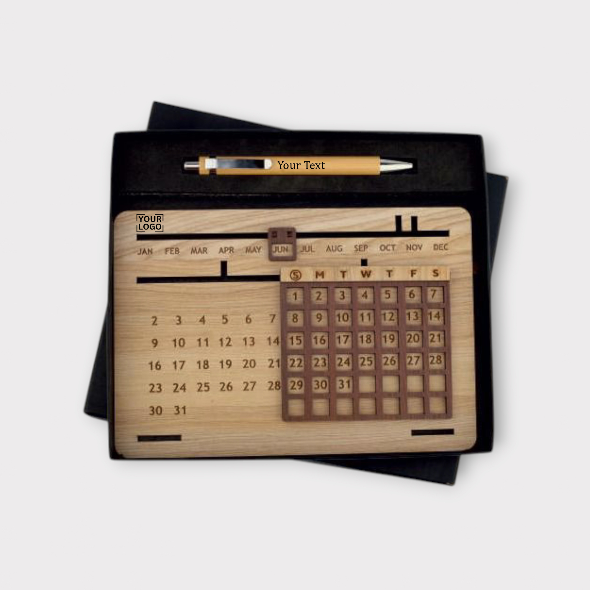 Premium Wooden Desk Calendar Gift Set with Pen – GS2-03-WOOD