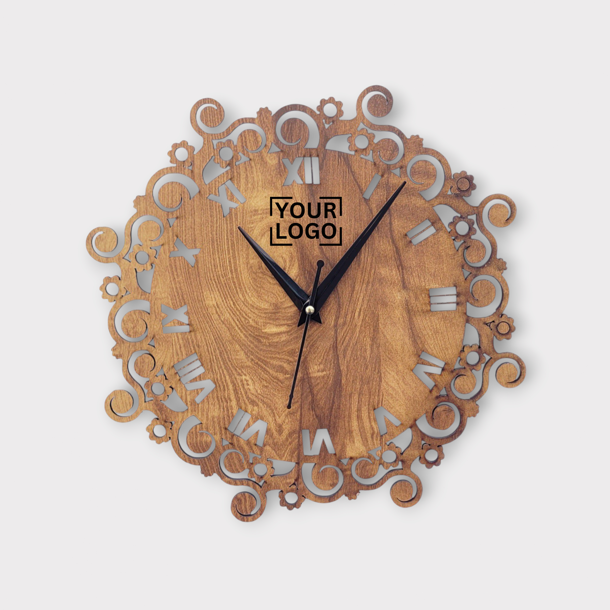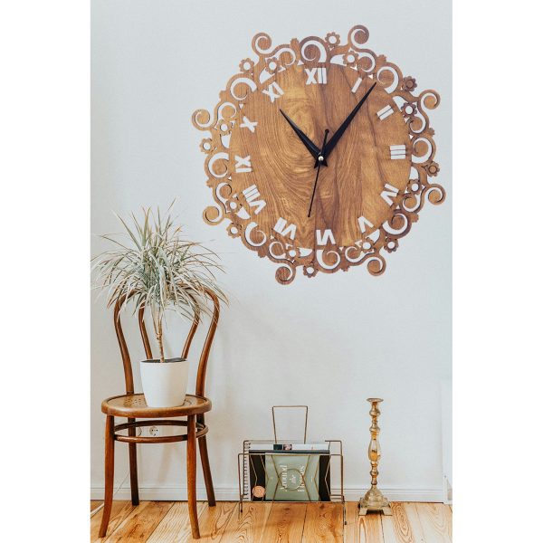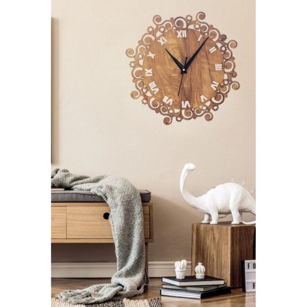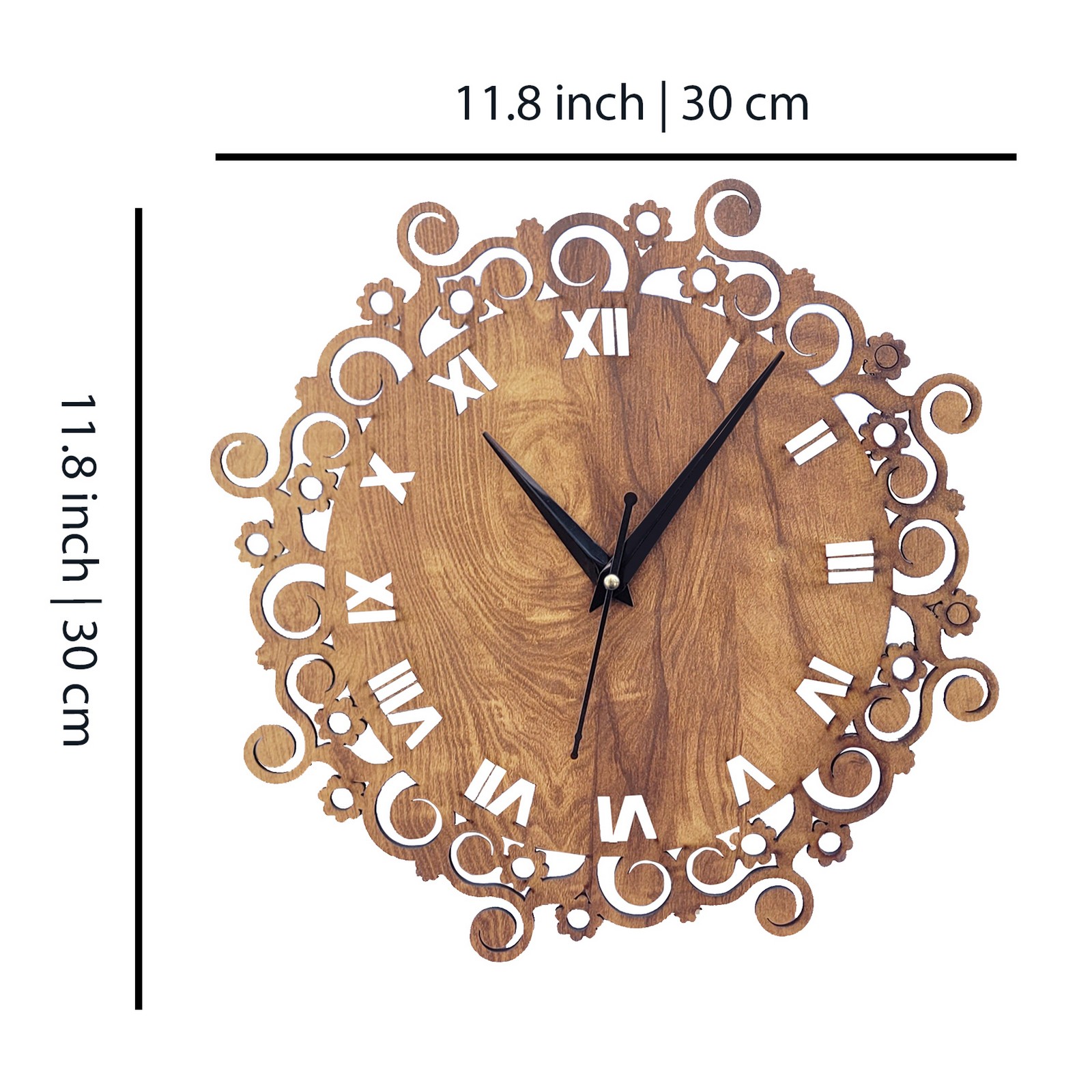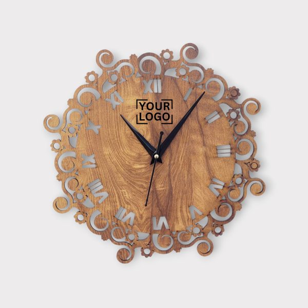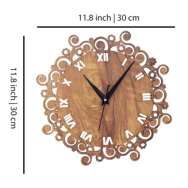 Vintage Wooden Wall Clock With Floral & Roman Numeral Design – CK03