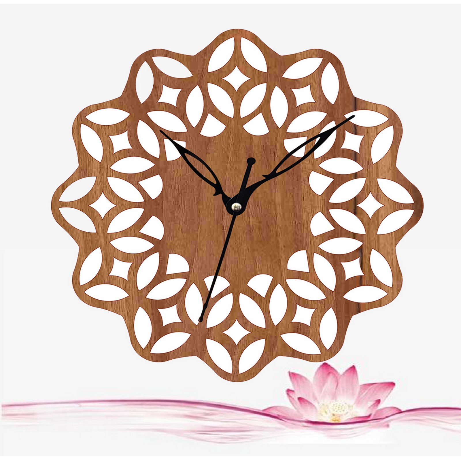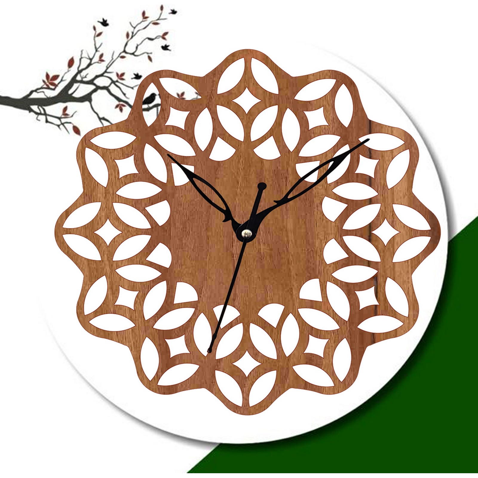 Wooden Wall Clock With Floral Cutout Design – CK123-1